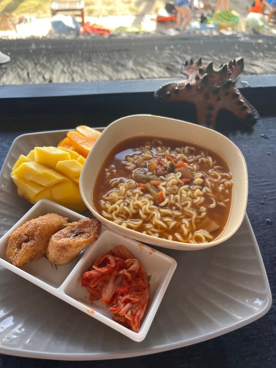 물놀이를 신나게 즐기고 나면 점심과 간식을 주는데요. 알아서 시간맞춰 주니 너무 좋았고 심지어 크랩이랑 닭다리 라면등 바로바로 만들어주시니 너무 맛있었고 배부르게 먹을수 있었네요. 이 모든것들이 호핑투어 안에 포함되어 있으니 점심을 뭐먹을지 신경쓰지 않아도 되서 너무 좋았습니다. 카라바오 호핑은 꼭 해보셨으면 좋겠습니다.